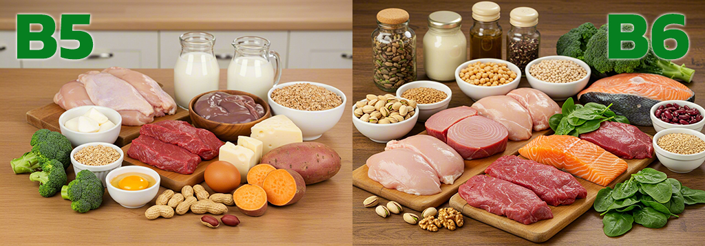 A B6 vitamin megtalálható a húsokban (baromfiban, marhában és sertéshúsban), halakban (tonhal, lazac, szardínia), hüvelyesekben (lencse, csicseriborsó, fekete bab), teljes kiőrlésű gabonákban (barna rizs, quinoa, zabpehely), zöldségekben (burgonya, édesburgonya, spenót, banán) és a diófélékben, magvakban (Napraforgómag, dió és mandula).
