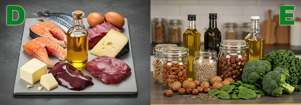 A D-vitamin megfelelő szintjét a következő táplálékok fogyasztásával biztosíthatjuk: halak (különösen a zsíros halak, mint a lazac, makréla, hering és tonhal), tejtermékek: főként a D vitaminnal dúsítottak), illetve a tojássárgájában is található valamennyi D vitamin.