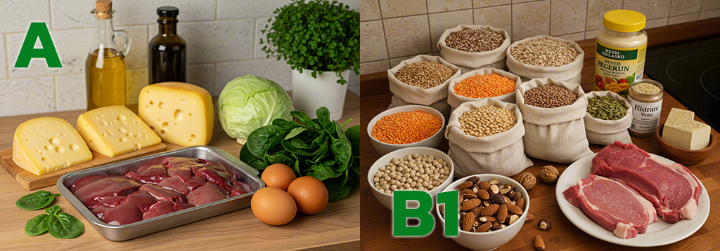 A B1 vitamin természetes forrásai közé tartoznak a teljes kiőrlésű gabonák (barna rizs, zab, búza és árpa), a hüvelyesek (lencse, bab és borsó), valamint a diófélék és a magvak (mandula, napraforgó és pekándió). De a különböző húsokban (sertéshús, baromfi és hal), tejtermékekben (tej és joghurt) valamint zöldségekben (spenót és kelkáposzta) jelentős mennyiséget találunk.